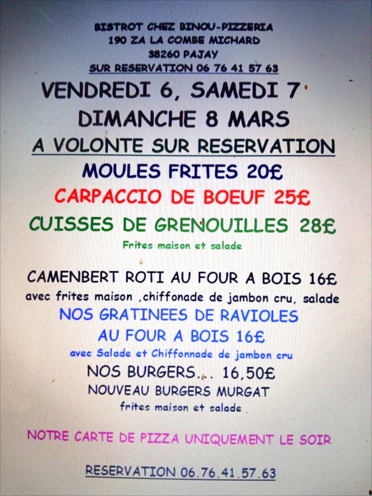 Vendredi et samedi 18h à 22h - Dimanche 18h à 20h30